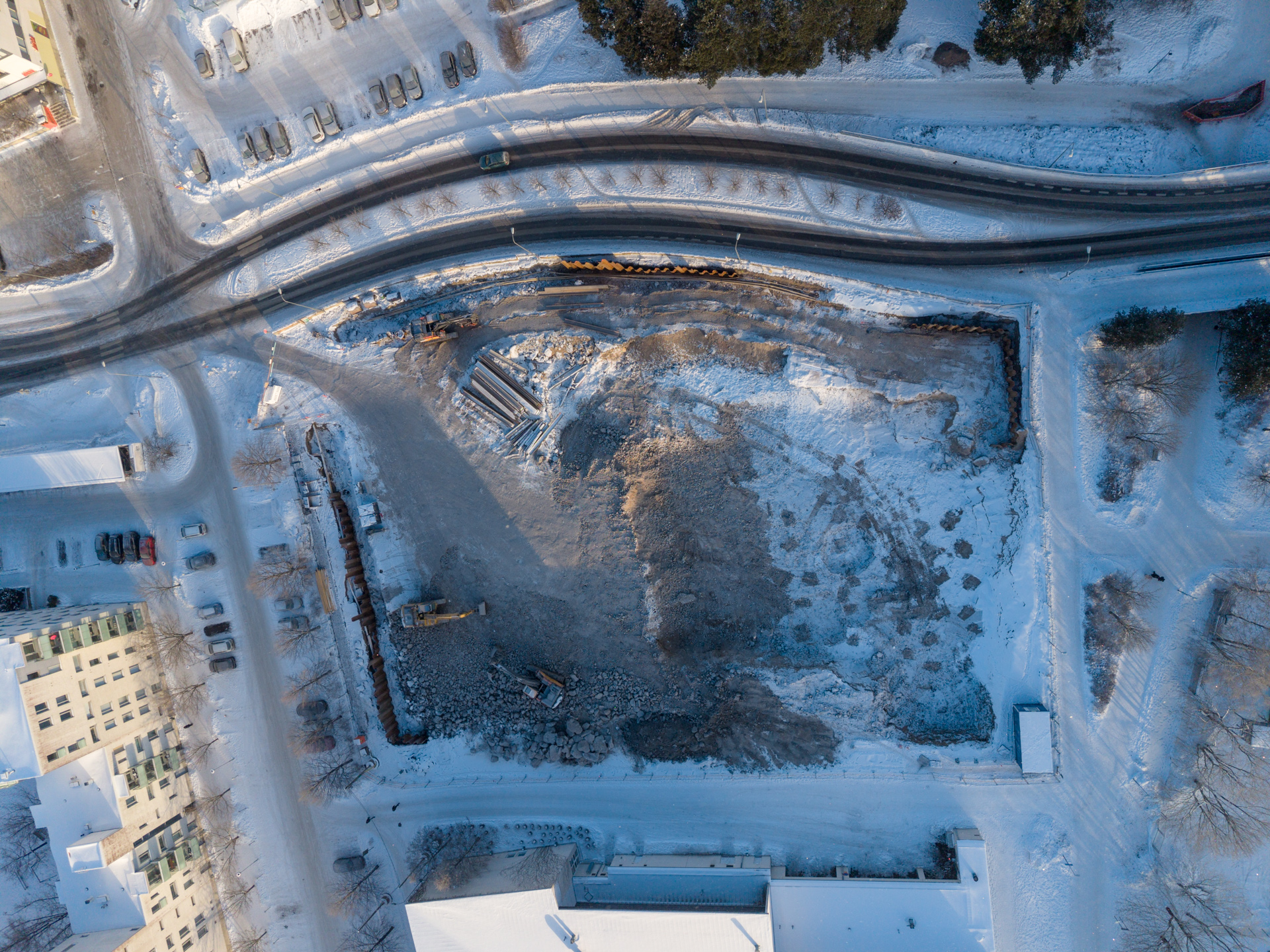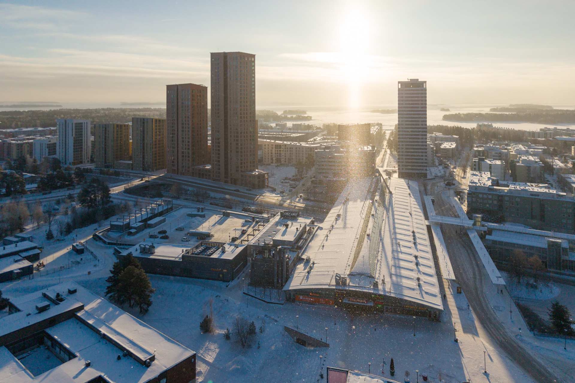 This time I got very close. I cycled underneath, along it and had a good look at it. Who knows when I would have a similar opportunity the next time? I tried to make the most out of this visit, but it was cold and operating a drone safely in cold conditions is a challenge. So, I am not very happy with the results, I would have wanted to study the angles and different perspectives more. In any case, for Helsinki the bridge is huge and and bold statement – it will be accessible only to pedestrians, cyclists and the tram. Yes, no cars!
