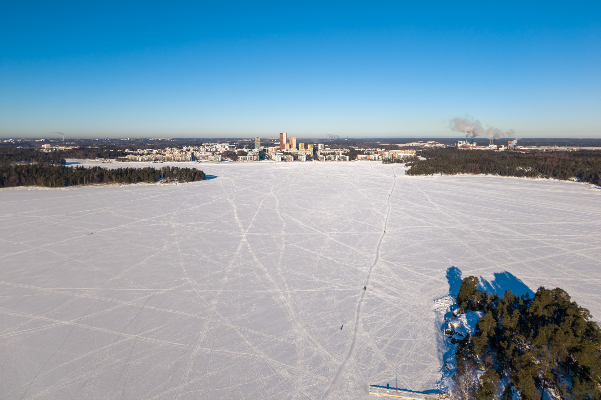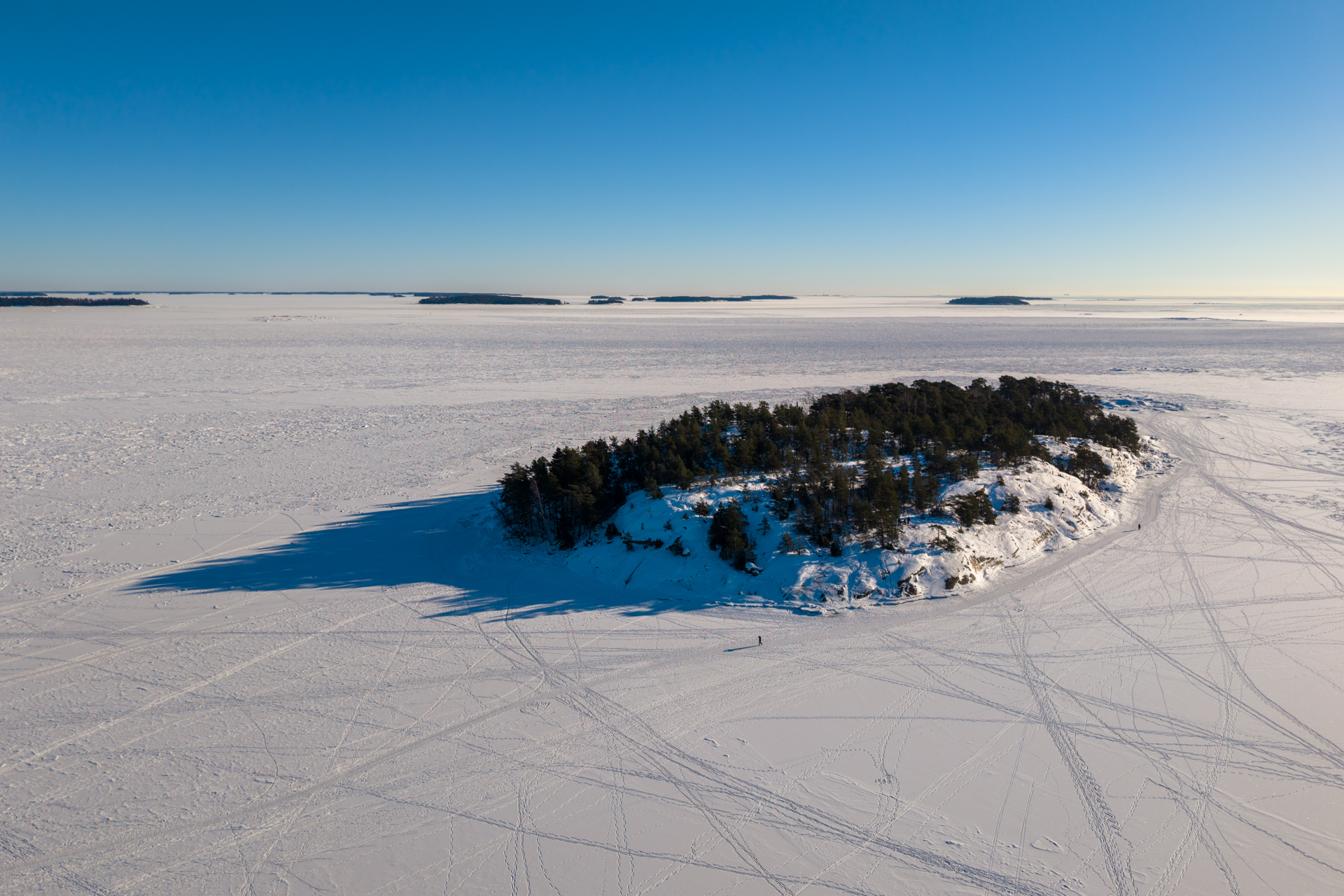 Vuosaari, in the very East of Helsinki, is a gem; it has been my home now for over 17 years. I have been photographing many of its areas all year round over and over. Spring is lovely with the cherry blossoms, the architecture is increasingly more interesting, but nature is just stunning. Uutela, Mustavuori and Kallahti just to name a few, with the inviting forests are pockets of calm, offering breathing space. But in winter when the sea is properly frozen, the publicly accessible space grows. It’s very interesting to see eg. how clear paths are being formed on ice! How does this happen? To me this is fascinating.